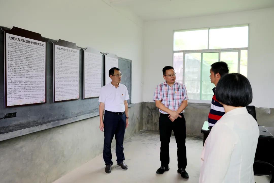 德化县委常委、县纪委书记、县监委主任黄俊荣(左二)到国宝乡格头村蹲点调研,摸查重点监督对象的履责和廉洁自律情况。(郭耀宏 摄)