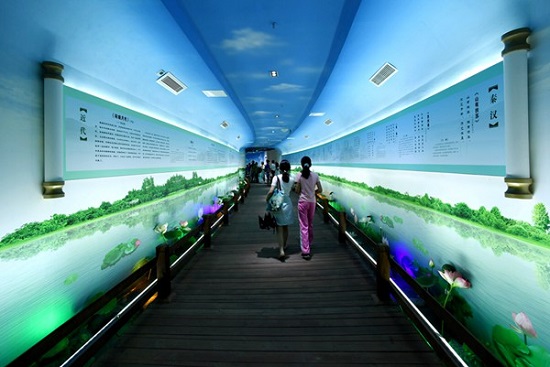自古以来,莲花出淤泥而不染,一直是洁身自好的象征。图为群众在四川省遂宁市船山区圣莲岛“莲廉文化”教育长廊里徜徉漫步。