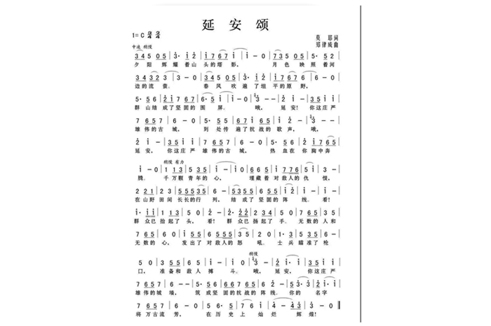 诞生在巍巍宝塔山下、滔滔延河之滨的《延安颂》,带着无数革命者崇高的理想和信念,传颂到抗日前线和全中国,直到南洋各地,成为革命圣地延安的光辉象征。