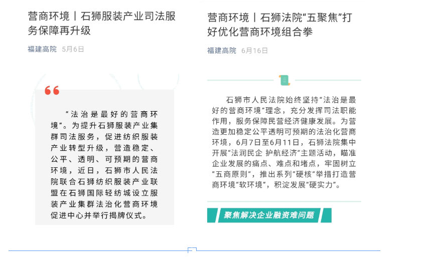 为发挥法治对营商环境的引领、规范和保障作用,石狮市人民法院推出服务保障民营经济11条举措,旨在为全方位推动高质量发展超越提供坚实的法律支撑、有力的法治保障、优质的法律服务。