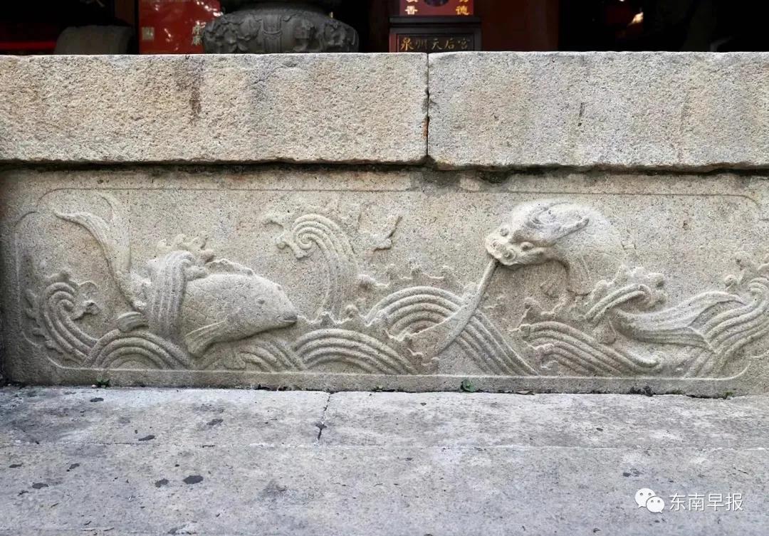 正殿台基座高出地面1米,花岗岩砌筑,四面围堵浮雕鲤鱼化龙、神驹飞驰、鹤舞祥云等中国传统吉祥图案,富有艺术感染力,烘托天后宫庄严肃穆的气氛,寄托人们追求美好愿景的期望。