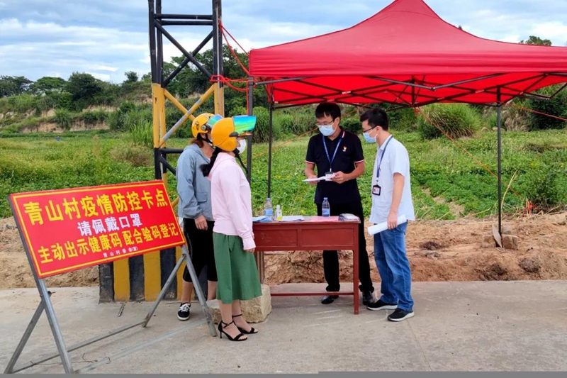 惠安县山霞镇纪检监察干部在青山村疫情防控卡点了解测温验码、信息登记等情况。(张金莲 摄)