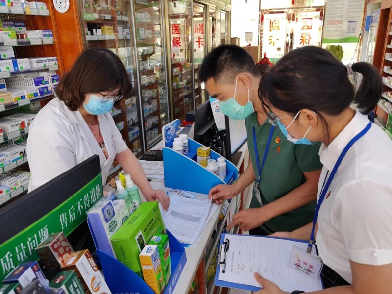 晋江市西滨镇纪检监察干部到辖区药店督查防控工作落实情况 (庄燕娇 摄)