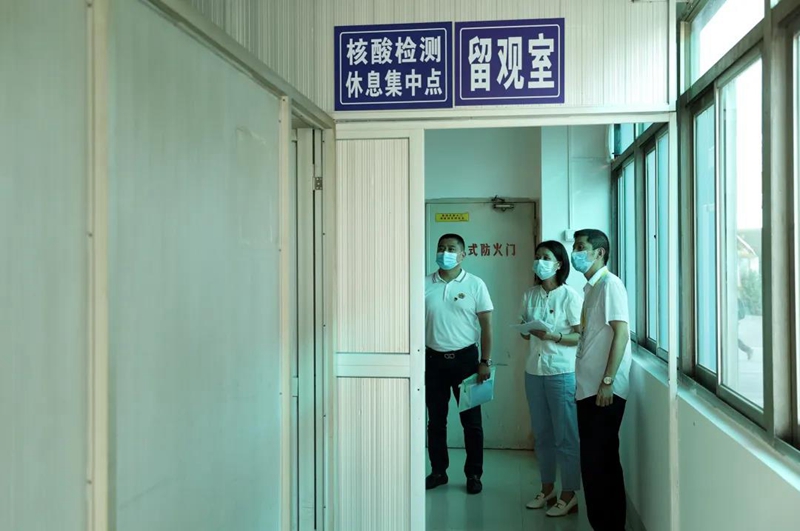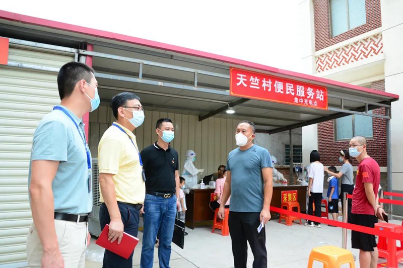 泉港区纪委监委疫情防控专项督导组第二小组工作人员在南埔镇天竺村临时核酸检测点开展现场督导(郑鉴强 摄)