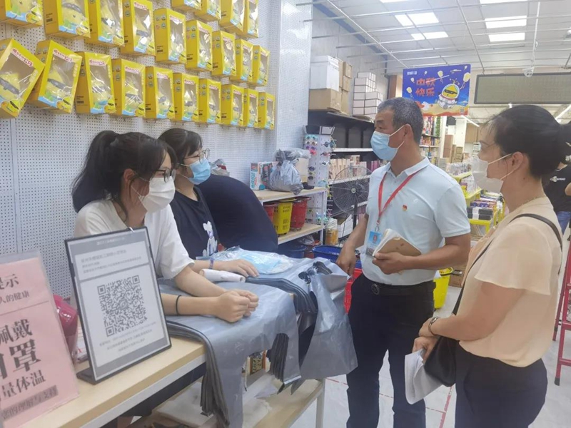 鲤城区临江街道纪检监察干部在小商品批发市场检查疫情防控措施落实情况(王莉莉 摄)