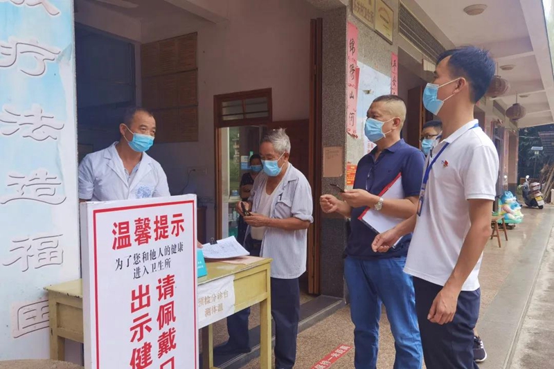 永春县东关镇纪检监察干部对辖区卫生所预检分诊、“三码”联查、就诊登记等疫情防控工作进行监督检查。(冯国政 摄)