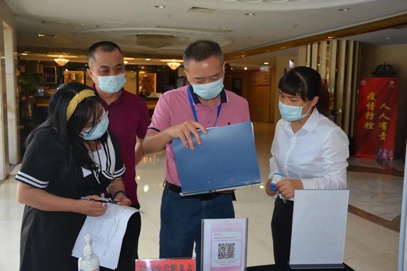 安溪县由县纪委监委牵头,组建3个督导组开展疫情防控督导工作。图为督导组成员联合县文体旅局干部检查辖区酒店疫情防控措施落实情况。(林伟彬 摄)