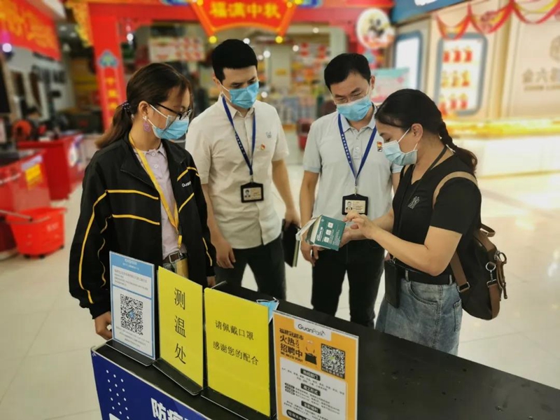 泉州市纪委监委第五纪检监察室启动疫情对口联系指导机制,与洛江区纪委监委上下联动,至洛江区大型商超等重点场所开展疫情防控督导工作。(林小莉 摄)