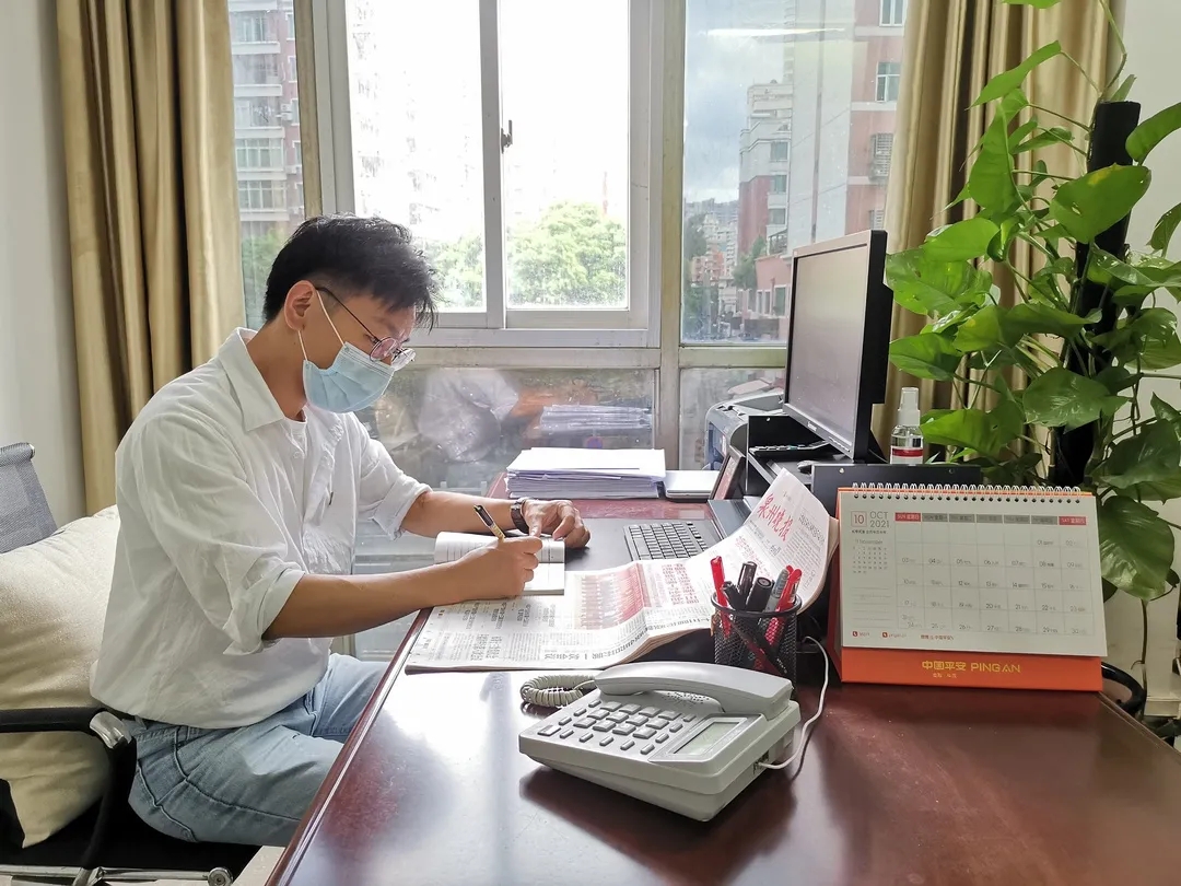 图为丰泽区丰泽街道纪检监察干部通过《泉州晚报》学习市纪委全会精神 (苏杰伟 摄)
