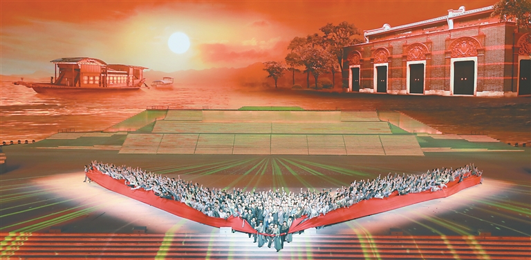 6月28日晚,庆祝中国共产党成立100周年文艺演出《伟大征程》在北京国家体育场盛大举行。这是戏剧与舞蹈《破晓》。新华社记者 庞兴雷 摄