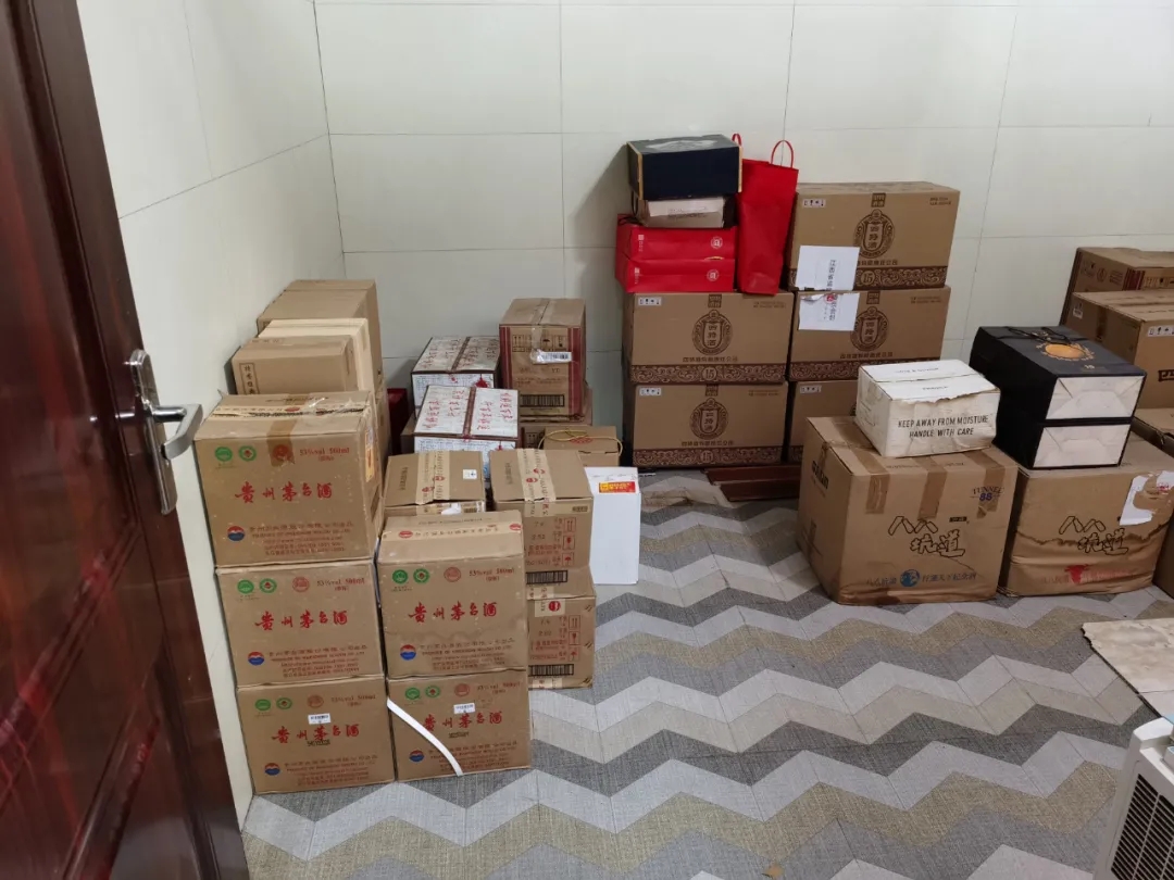 邓寄鹏收受的部分高档白酒。(江西省纪委监委供图)