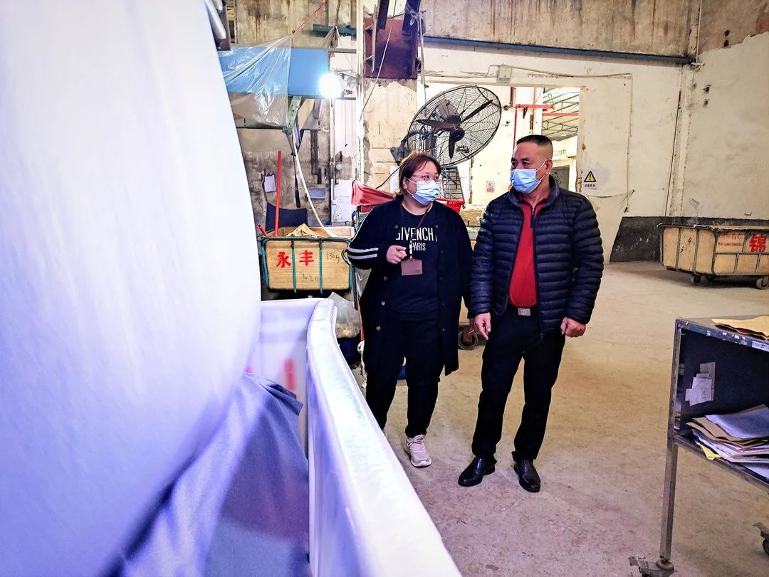 石狮市鸿山镇纪检监察干部走访永丰印染有限公司,了解供热价格对企业发展影响等情况。(侯振威 摄)