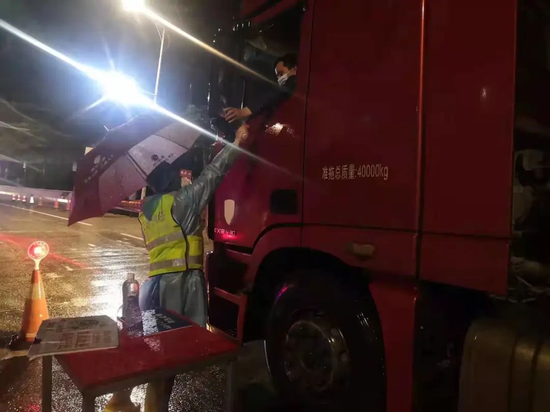 以往路上驾车时如果遇到重型卡车,我都是“退避三舍”,如今,当一辆辆满载货物的大货车迎面出现在检查通道上,身穿防护服、反光马甲的我,会下意识地迎上去,努力踮起脚尖,测体温,查看驾乘人员健康码、核酸检测结果。天气晴朗时,重型卡车驶过身旁带起的砂石灰土和排气管喷射而出的热气迎面扑来,我也不敢有一丝懈怠。我和同事深知,交通查验点的工作非常重要,既要保障好应急“绿色通道”,又要对每一辆过往车辆进行查验。这个过程细致严密,不管是烈日当空,还是冷雨扑面,我们始终认真值守,严格落实落细每一项管控措施。