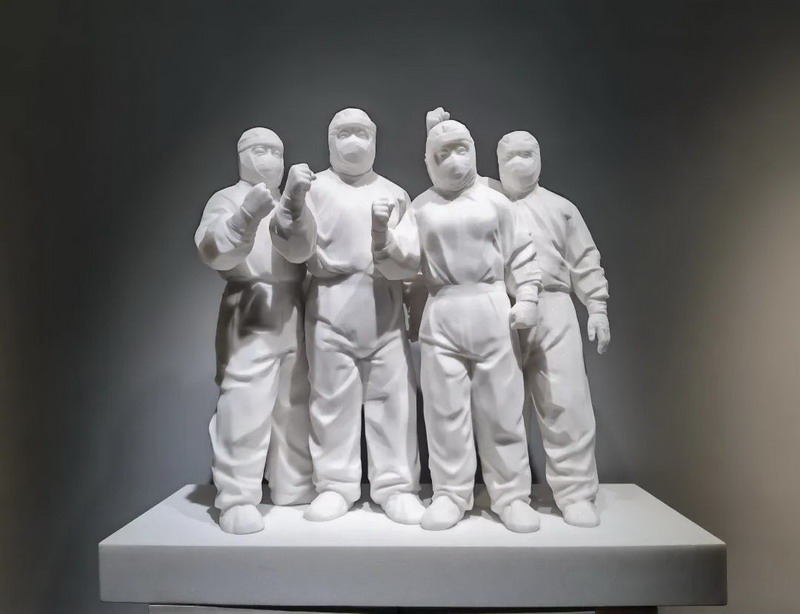 石雕《抗疫有我,请党和人民放心》| 惠安 吴德强