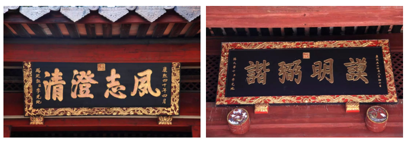 由于辅佐有功,康熙皇帝三次御赐亲笔匾额。康熙四十年,为表彰李光地治河功绩,康熙御书“夙志澄清”匾额赠之。12年后,康熙再赐其“夹辅高风”御匾,“夹辅”意即左右辅佐。两年后,康熙在热河又赐其“谟明弼谐”御匾,以褒扬他“计谟明智,抉弼和谐”。