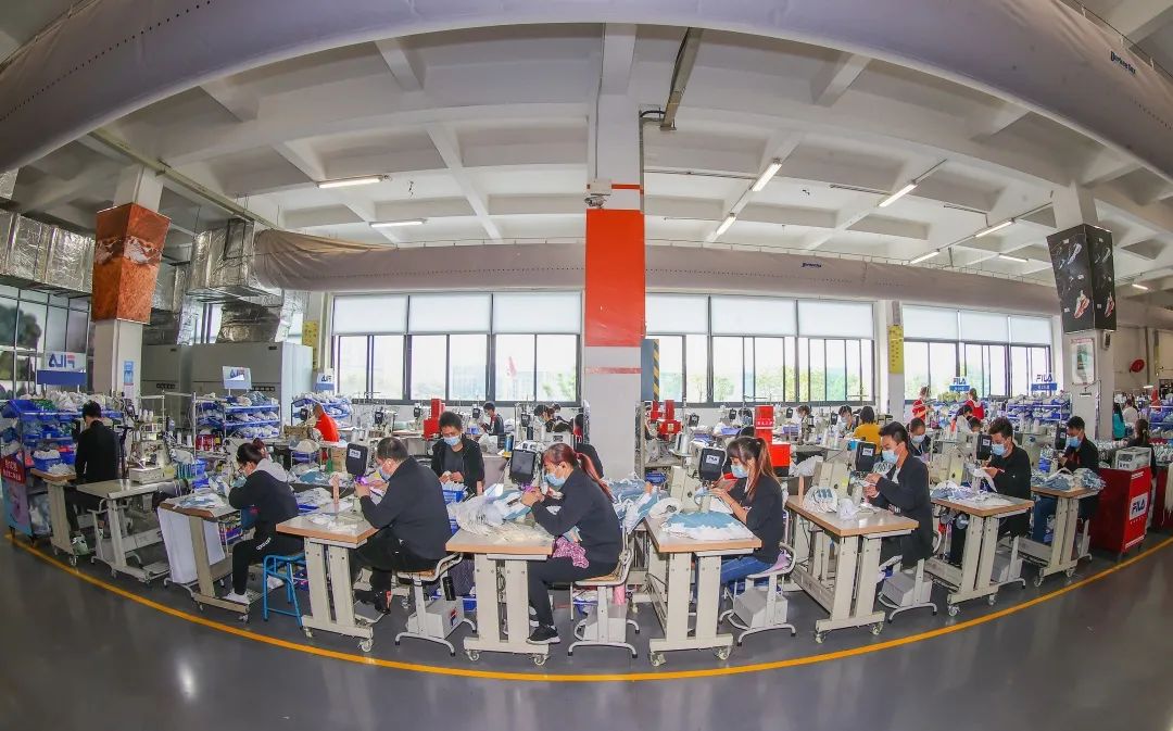 在安踏体育公司生产车间里,工人们正在紧锣密鼓生产。(董严军 摄)