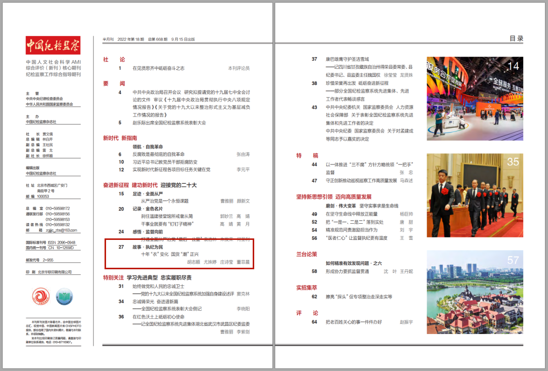 刚刚出版的《中国纪检监察》杂志2022年第18期刊发《十年“衣”变化,国货“潮”正兴》长篇通讯,以我省鞋服产业发展为例,介绍我国鞋服产业十年发展,点赞福建省纪检监察机关监督赋能推动产业高质量发展。