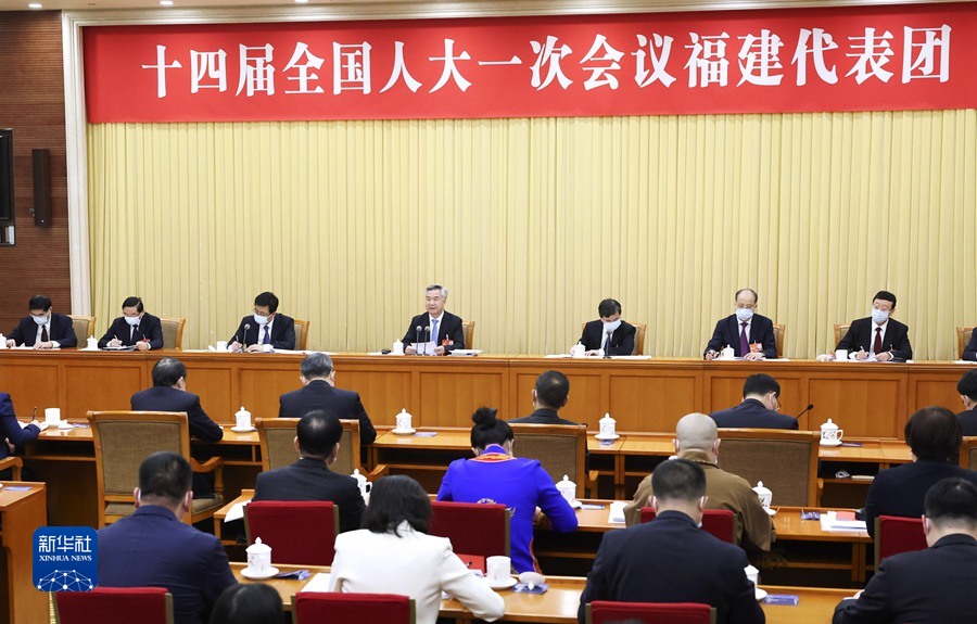3月5日,中共中央政治局常委、中央纪委书记李希参加十四届全国人大一次会议福建代表团的审议。新华社记者 庞兴雷 摄