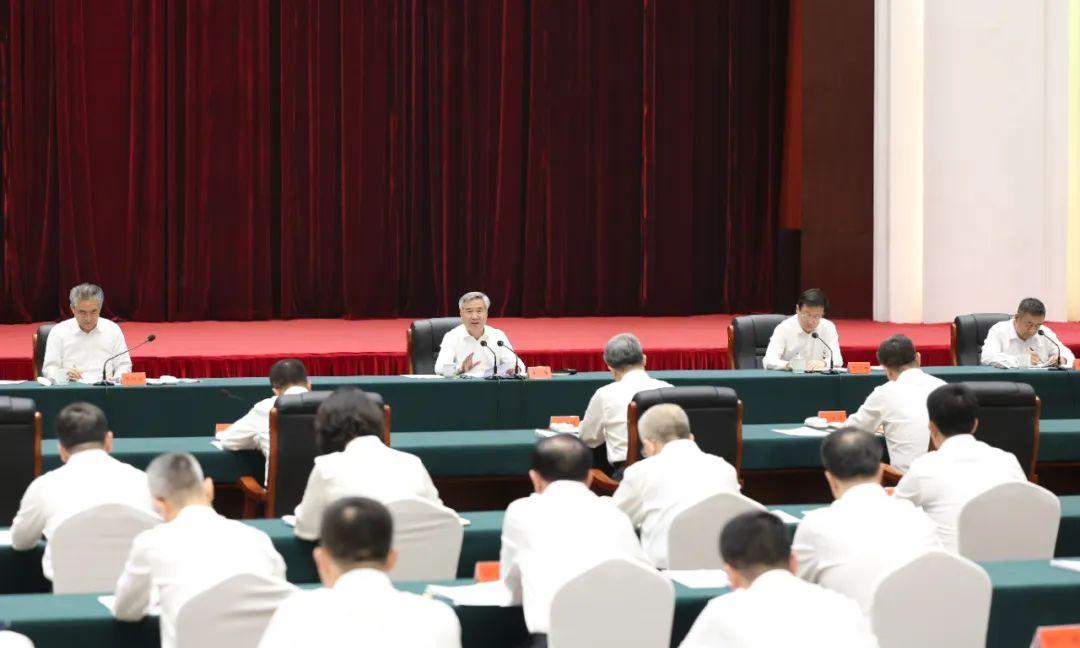 7月2日至5日,中共中央政治局常委、中央纪委书记李希到山西调研。这是7月4日,李希在太原主持召开座谈会,了解纪检监察机关深入推进全面从严治党、正风肃纪反腐、开展党纪学习教育等情况,并听取意见建议。新华社记者 丁海涛 摄