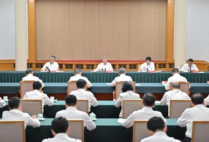 8月20日至22日,中共中央政治局常委、中央纪委书记李希到山东调研。这是8月22日,李希在济南主持召开座谈会。新华社记者 岳月伟 摄