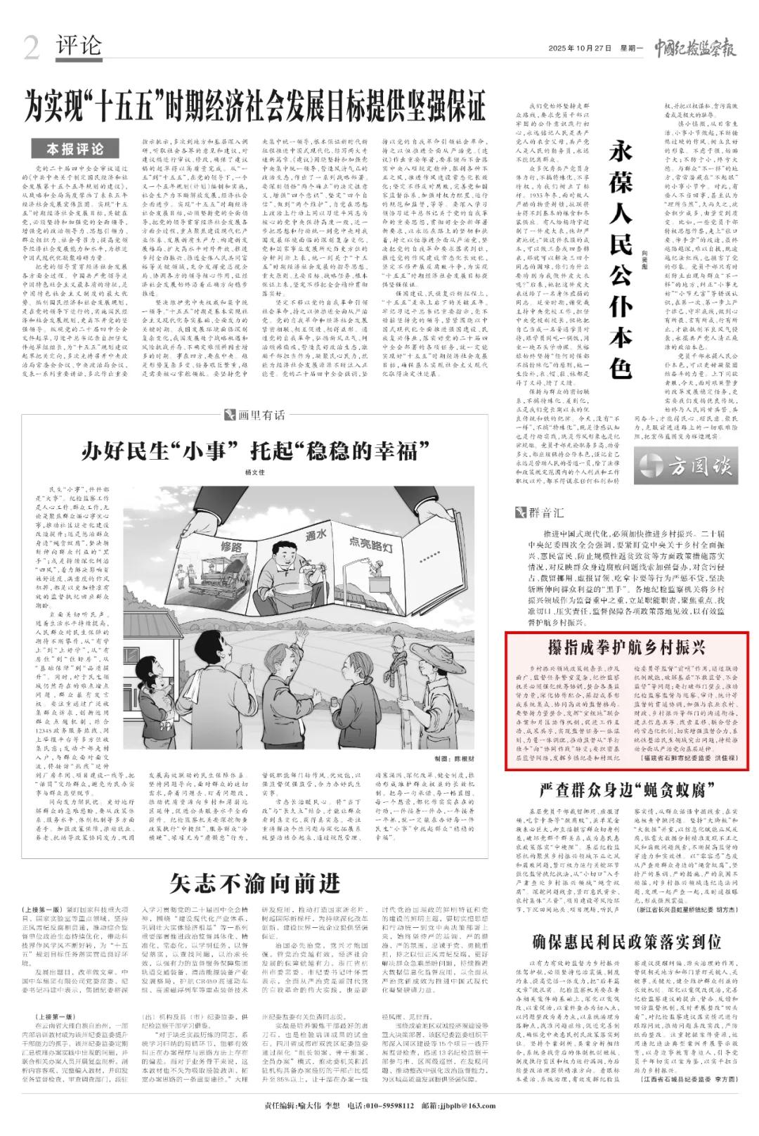 10月27日《中国纪检监察报》第9409期第2版群音汇栏目刊发了我市纪检监察干部的评论文章——攥指成拳护航乡村振兴