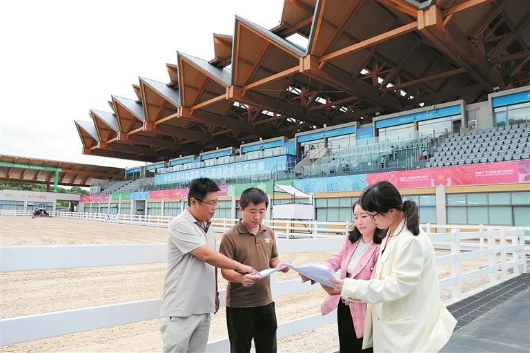 近日,广东省深圳市光明区纪检监察干部深入光明国际马术中心检查督导场地建设、设施运行等环节工作,保障十五运会马术项目赛事顺利举办。肖桂䘵 摄