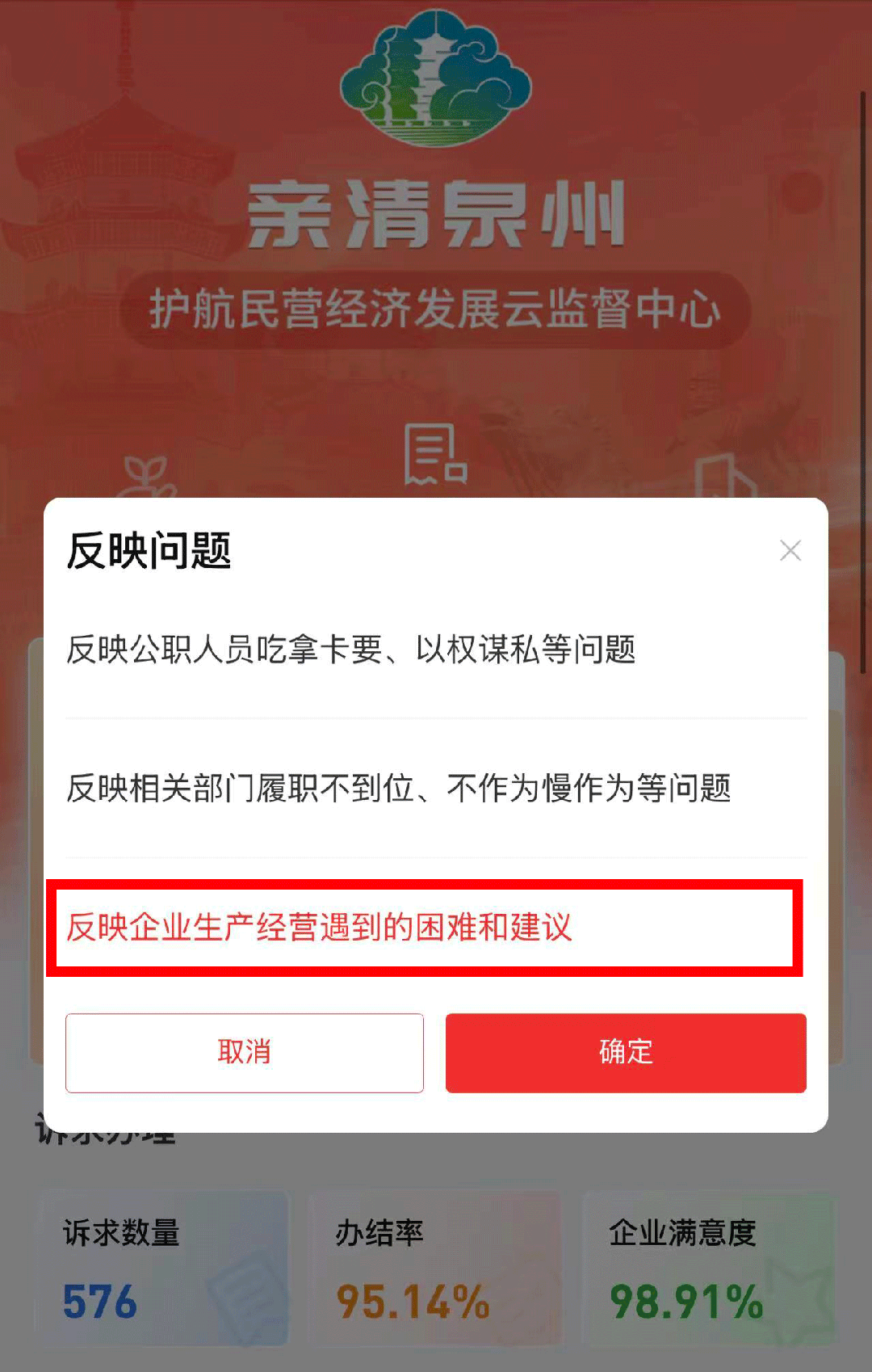 通过“亲清泉州”护航民营经济发展云监督中心平台提交诉求,具体操作步骤如下: