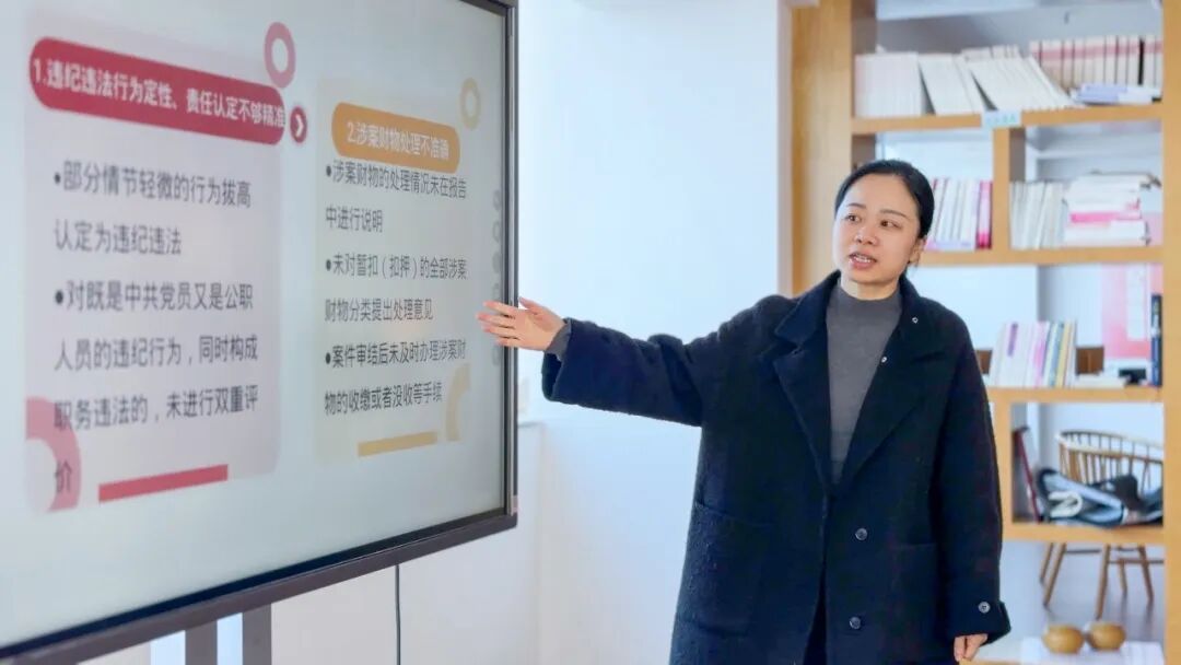 找准问题核心后,她立即带领团队重新梳理问题线索、指导审查调查组补全证据链,对每一处细节、每一份证据都反复核实推敲。她始终牢记案件审理“二十四字”方针,逐字研读纪法条规,反复论证定性依据,最终精准认定其搞团团伙伙违反政治纪律的事实,为案件准确定性处理提供了坚实支撑。